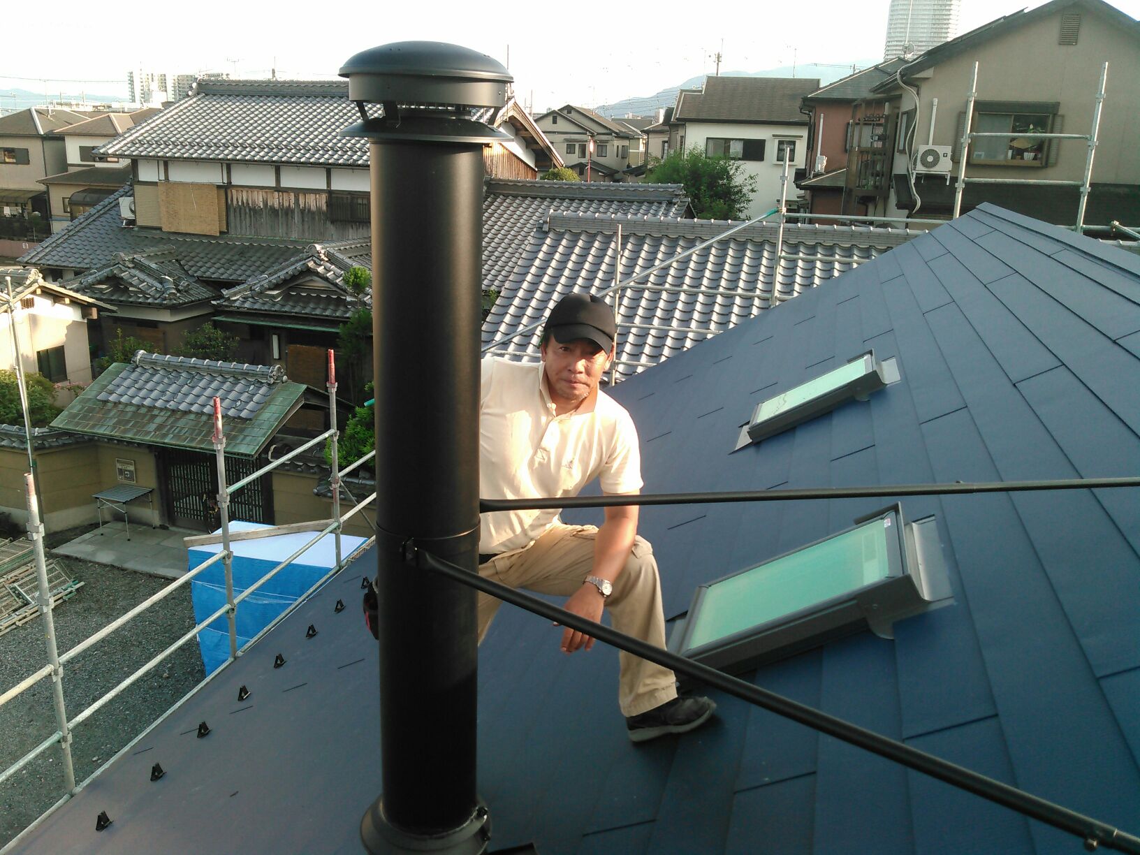お知らせログハウス現場だより現場いろいろ社長ブログ Dカットログ煙突工事 #社長ブログ 屋根工事が終わりすぐに薪ストーブの煙突を取り付けました。 びわ湖湖畔で比叡おろしの風も吹きます。 風対策の煙突補強も念入りにしました。 煙突設置の基準に沿って、棟より高く煙突トップがくるように設定しています。 6寸勾配なので足場無しでも設置は楽です。 前のページへ 一覧へ戻る 次のページへ