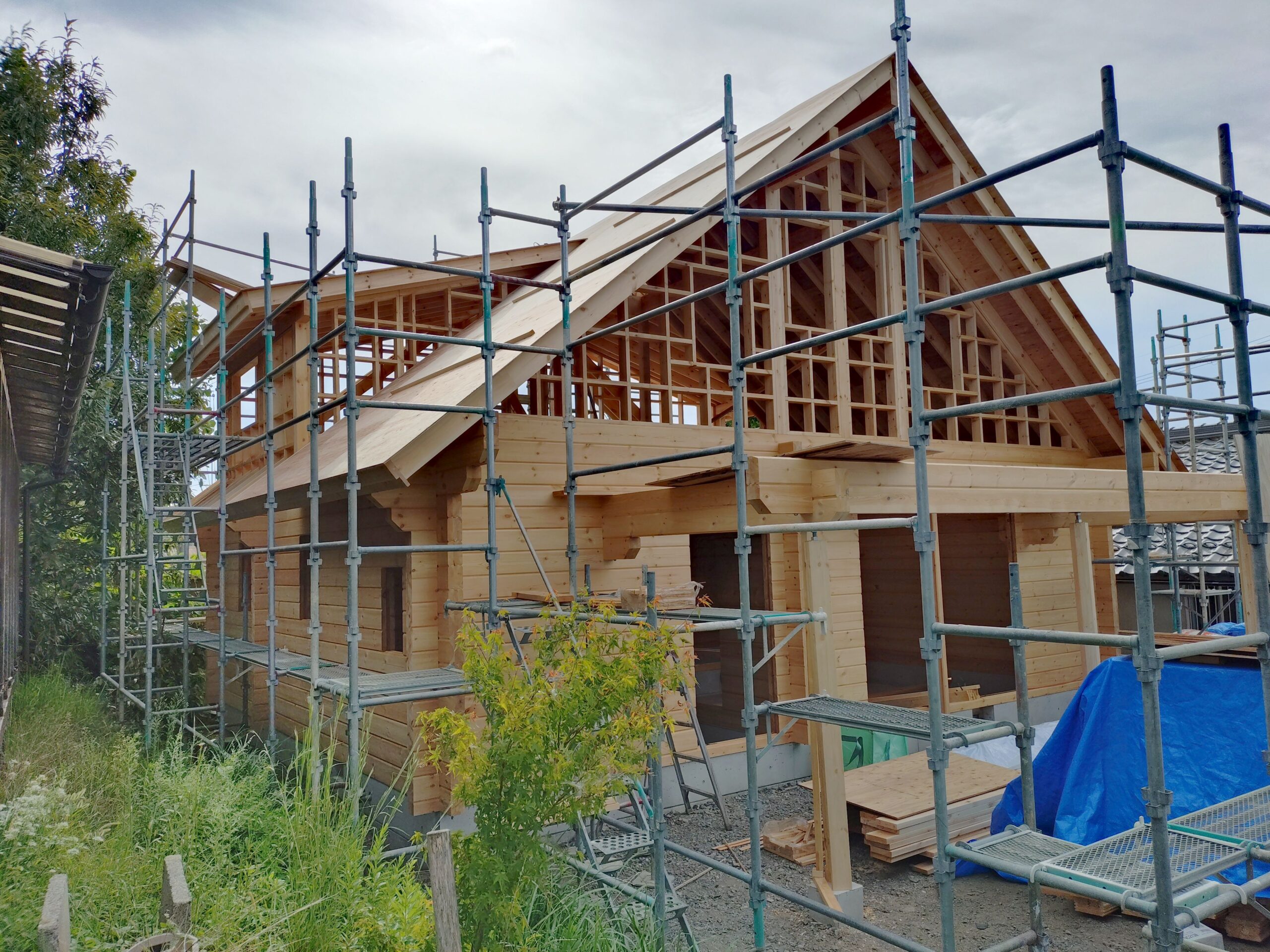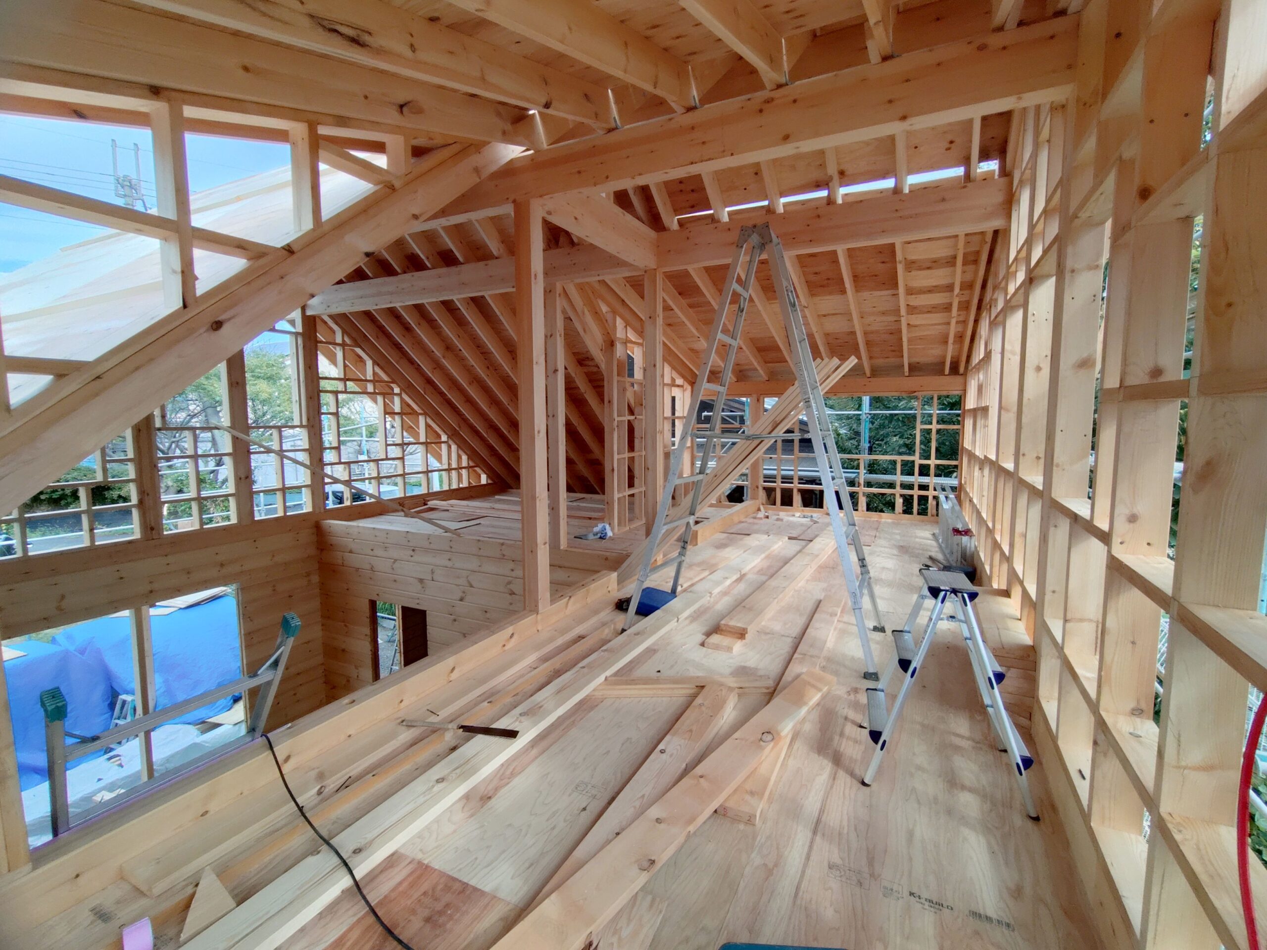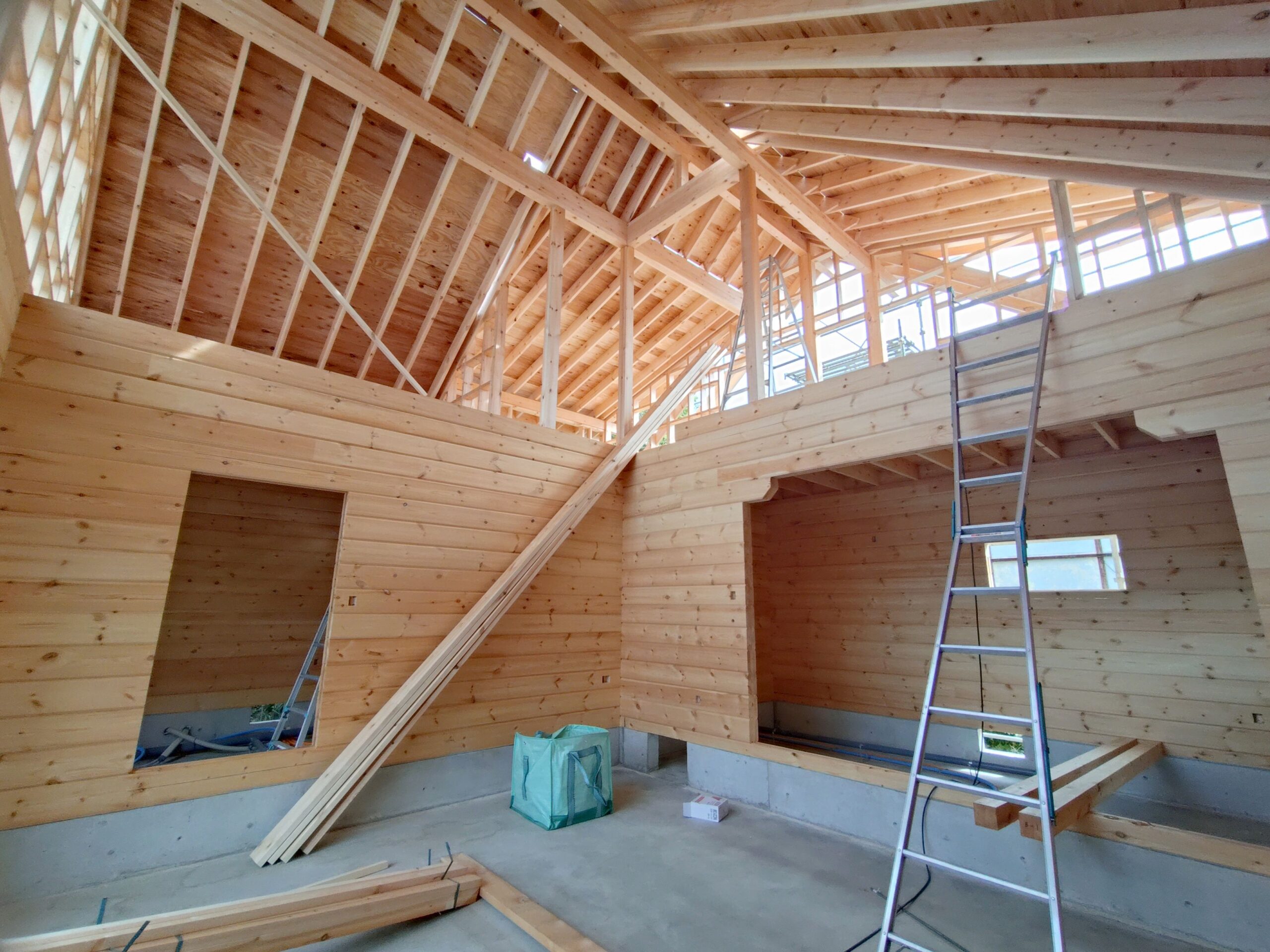 お知らせログハウス現場だより現場いろいろ社長ブログ 滋賀県 O邸母屋新築工事 施工状況1 #お知らせ #ログハウス現場だより 上棟後、屋根下地~屋根工事へと順調に進んでいます!!! 垂木の取り付け 野地板の施工 2階内部の様子 1階内部の様子 前のページへ 一覧へ戻る