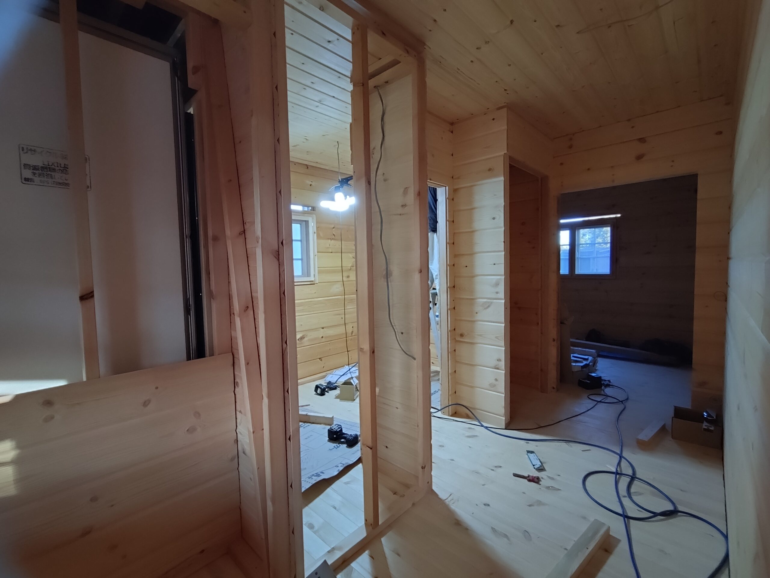 お知らせログハウス現場だより現場いろいろ社長ブログ 滋賀県 O邸 母屋新築工事 施工状況5 #お知らせ #ログハウス現場だより 間仕切り壁施工中です ウッドデッキ屋根の軒天張り 前のページへ 一覧へ戻る