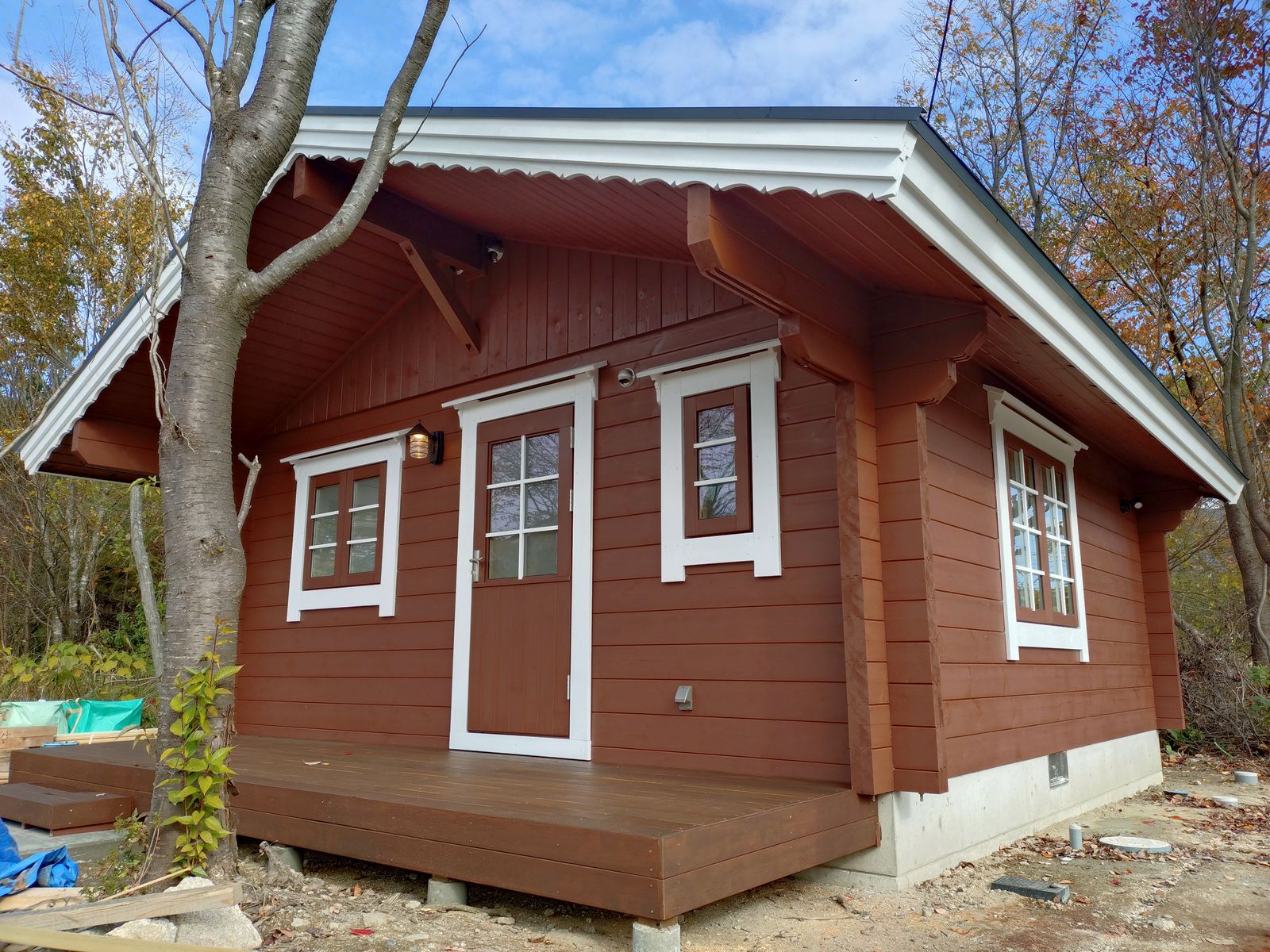 北欧調のカラーリングで可愛いログハウスが完成しました!